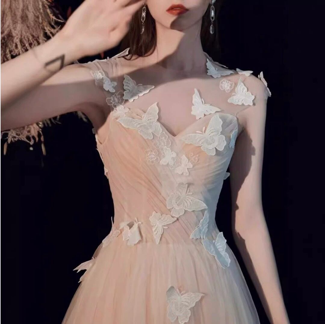 大人可愛い魅力満載のロングドレスのご紹介です!洗練されたAラインデザインが特徴で、パーティーや結婚式、披露宴といった華やかなシーンにぴったりな一着です。袖なしノースリーブスタイルと透け感のある切り替えが、上品さとセクシーさを演出します。