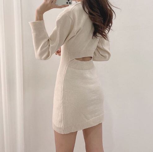 レディース ニット ニットワンピース ミニ 長袖 プリンセススリーブ クルーネック タイト スリム ふわふわ 編み上げ バックレス 中厚手 TR生地 PVC かわいい 大人可愛い おしゃれ キュート 学生風 無地 春 秋 ハロウィン 10代 20代 オフィス 学生 デート お出かけ お泊まり イベント 女子会 ショッピング コンサート ライブ 合コン コンパ カフェ 婚活 美脚 脚長 インスタ映え セクシー フリーサイズ 黒 アプリコット
