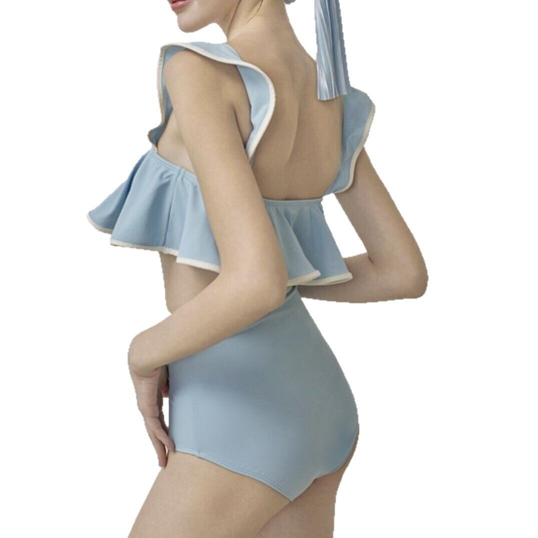 水着 レディース セパレート クロスボーダー レース 上下セット 大人可愛い カジュアル ガーリー 無地 リゾート 旅行 温泉 プール 夏 海 ビーチ 美脚 体型カバー M L XL ホワイト 水色