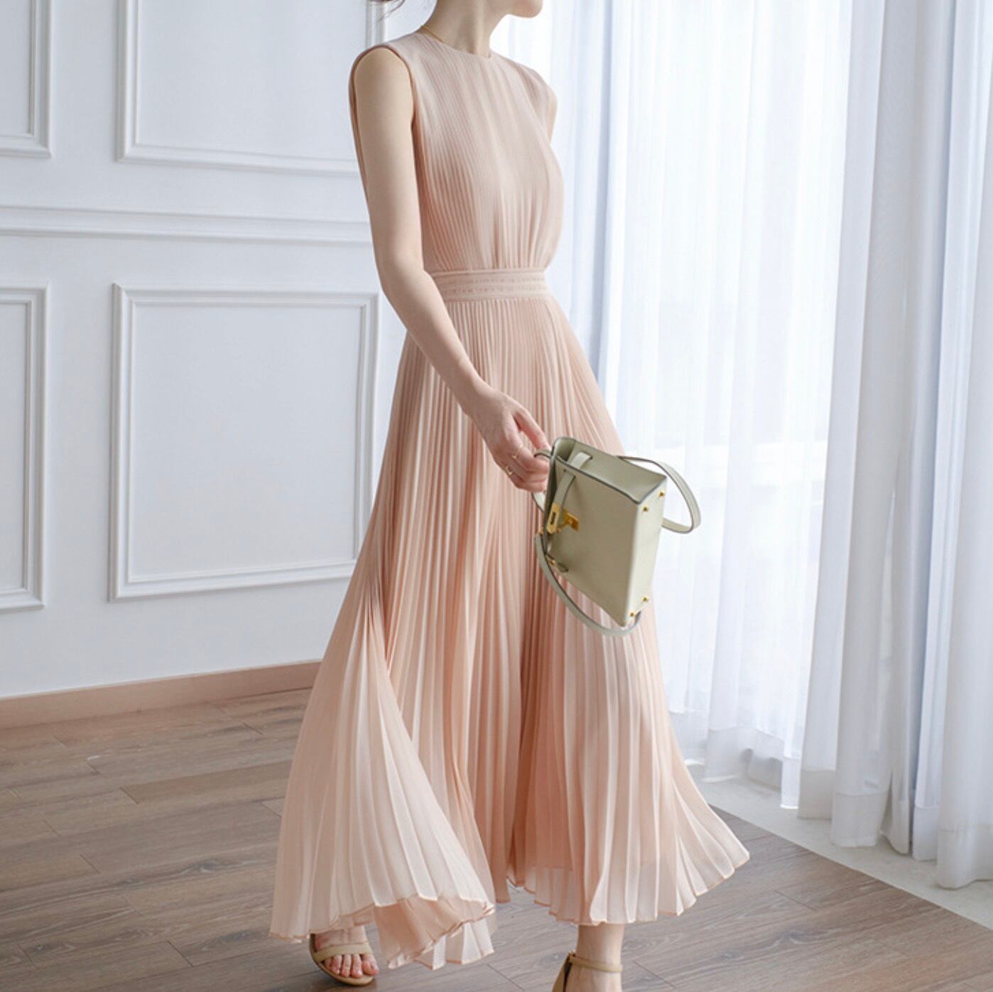 レディース ワンピース デート フレアワンピース ワンピドレス ロング ロング丈 袖なし ノースリーブ 襟なし セミフレア 切り替えデザイン プリーツ かわいい 大人可愛い きれいめ シンプル カジュアル 上品 おしゃれ お洒落 レトロ 大人女子 こなれ感 ラフ ラブリー キュート ガーリー 個性的 クール モード系 エレガント モダン 主役級 存在感 抜け感 無地 レディース デート お出かけ 女子会 休日 アウトドア 旅行 着回し 普段使い ファッション コーデ スタイル モテ プレゼント 定番