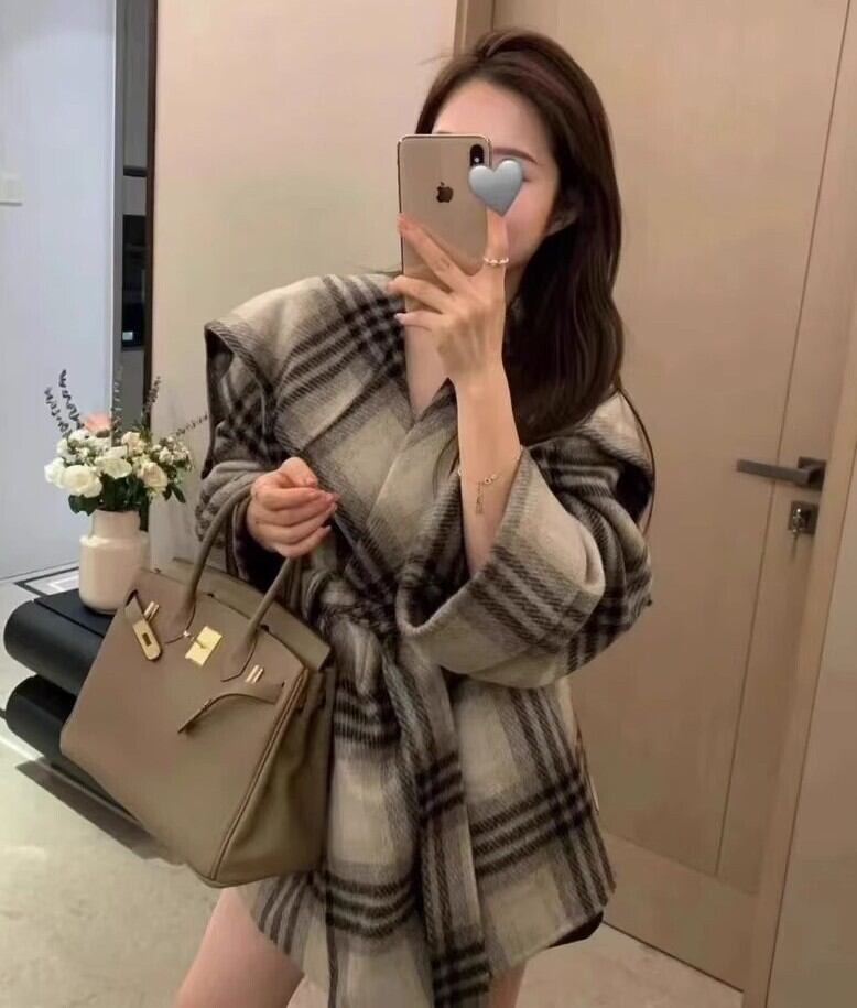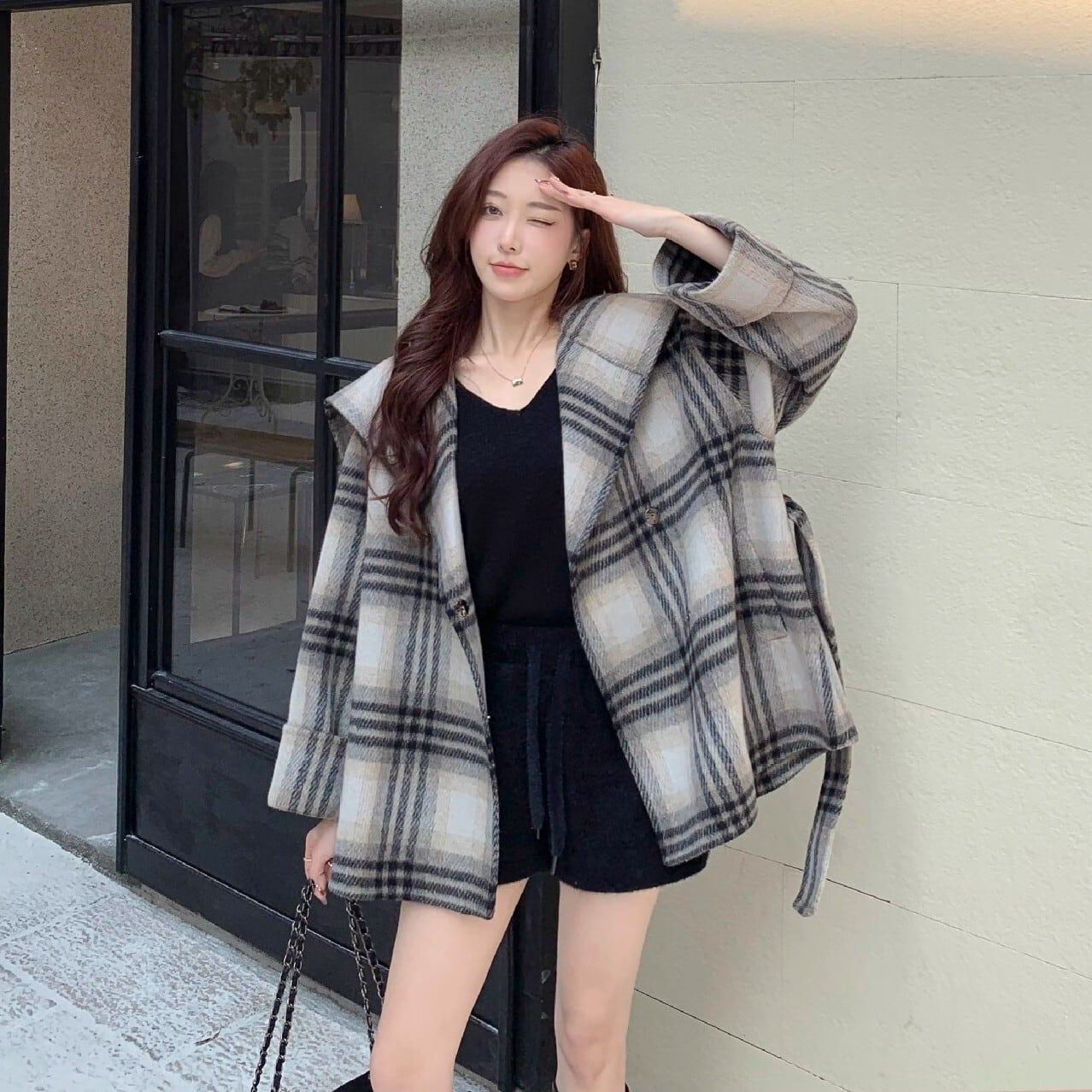 大きめのセーラーカラーが印象的なガウンコートです。チェック柄のレトロな雰囲気が、大人可愛い中に上品さと存在感をプラスします。
