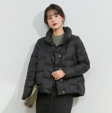 ご覧いただきありがとうございます!冬のおしゃれにぴったりなレディースダウンジャケットが登場しました。前開きのデザインと、スタンドカラーの角襟が魅力的な一着です。ふんわりとした中厚手のダックダウンが、暖かさと軽やかさを両立させており、通勤や通学、デートなど様々なシーンで活躍します!シンプルな無地のデザインは、どんなコーディネートにも合わせやすく、女子会やお出かけ、公園でのリラックスタイムにも最適です。