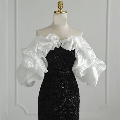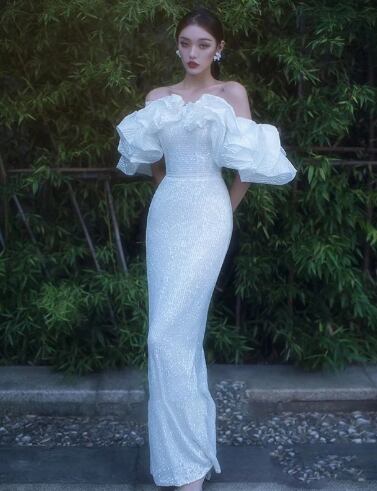 ご覧いただきありがとうございます!特別な日のためにデザインされた、エレガントで上品なドレスが登場しました。ロング丈と7分袖のプリンセススリーブが優雅さを際立たせ、結婚式や披露宴、演奏会、おしゃれなパーティーなど様々なシーンで華やかな存在感を演出します。ハイウエストのフィッシュテールデザインとタイトなシルエットは、スタイルを美しく見せつつ、セクシーさも兼ね備えています!