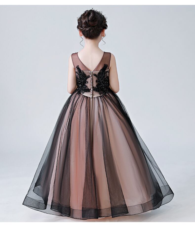 キッズ ガール 子供服 ワンピース ロング 袖なし ノースリーブ Vネック 襟なし ノーカラー フレア フェミニン ファスナー ボタン バイカラー 配色 バックコンシャス ボタン かわいい きれいめ シンプル 上品 おしゃれ エレガント 存在感 フォーマル かっちり キュート プリンセス シック 無地 春 夏 秋 冬 結婚式 二次会 披露宴 パーティー イベント レストラン ホテル 発表会 清楚 インスタ映え サイズ豊富 黒 ブラック 大人カラーベーシックカラー