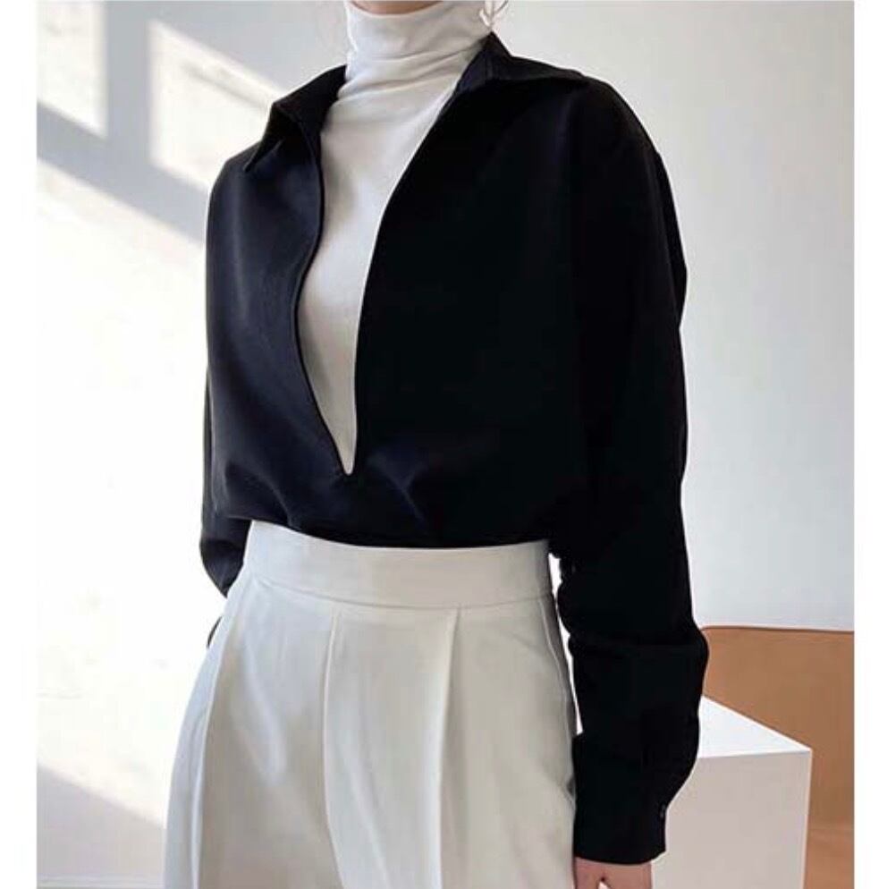 大人女子にぴったりのミディアム丈シャツのご紹介です!袖ありのボリューム袖デザインが、シンプルながらもスマートでおしゃれな印象を演出します。Vネックと襟付きのスタイルが、上品さとキュートさを両立させ、カジュアルからきれいめまで幅広いコーディネートに対応可能です。透け感のある素材で、季節を選ばず快適にお過ごしいただけます。デートや女子会、休日のお出かけにぴったりの一着です。