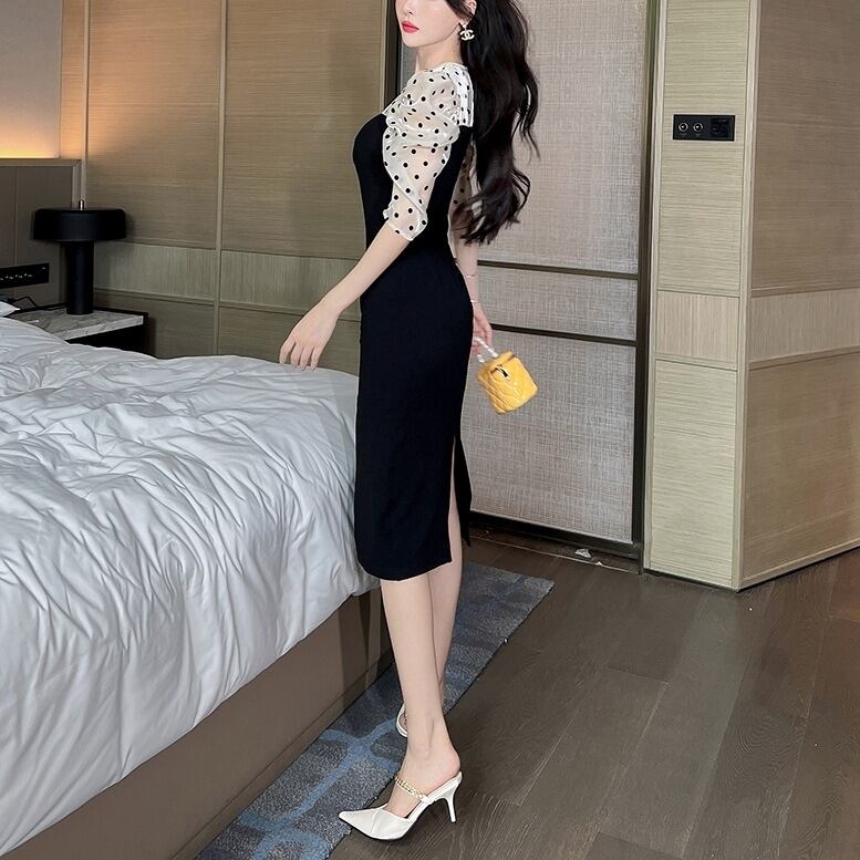 ワンピース タイトワンピース ドレスワンピース ミディアムワンピース ドット切り替えワンピース クルーネック シアーショルダー ドット柄 ドッキングワンピース タイト ミディアム丈 ひざ下 レディース パーティードレス お呼ばれドレス オシャレ きちんと感 キレイめ 上品 フェミニン 大人可愛い エレガント ガーリー クラシカル 結婚式 二次会 お呼ばれ スタイルアップ パーティー オケージョン スマート コンパクト 細見え 可愛い レトロ 演奏会 発表会 フォーマルドレス 鮮度アップ