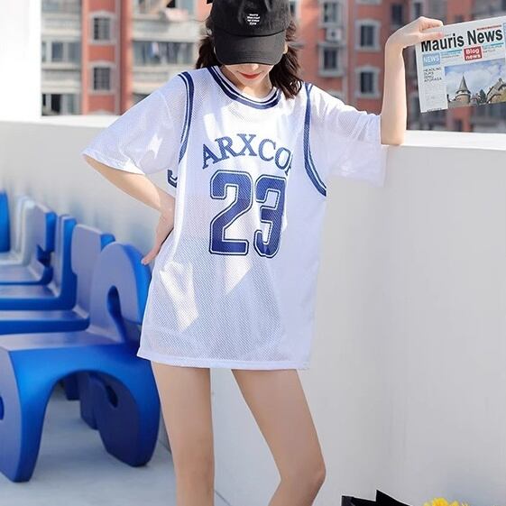 ハイウエストのショートパンツと半袖のプルオーバートップスの組み合わせは、体系をカバーしながら美脚効果も期待できます。