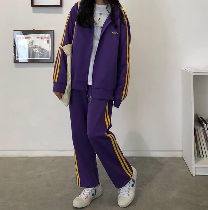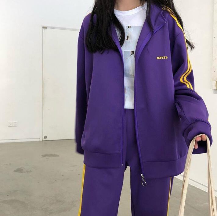 レディース ジャージ レギュラー丈 長袖 レギュラースリーブ スタンドカラー ストレート ストリート ファスナー 前開き 薄手 ポリエステル かわいい カジュアル クール ストライプ 春 秋 学校 通学 部活 お泊まり アウトドア キャンプ イベント リゾート 旅行 休日 ショッピング 楽ちん S M L XL 2XL 黒 紫 黄色