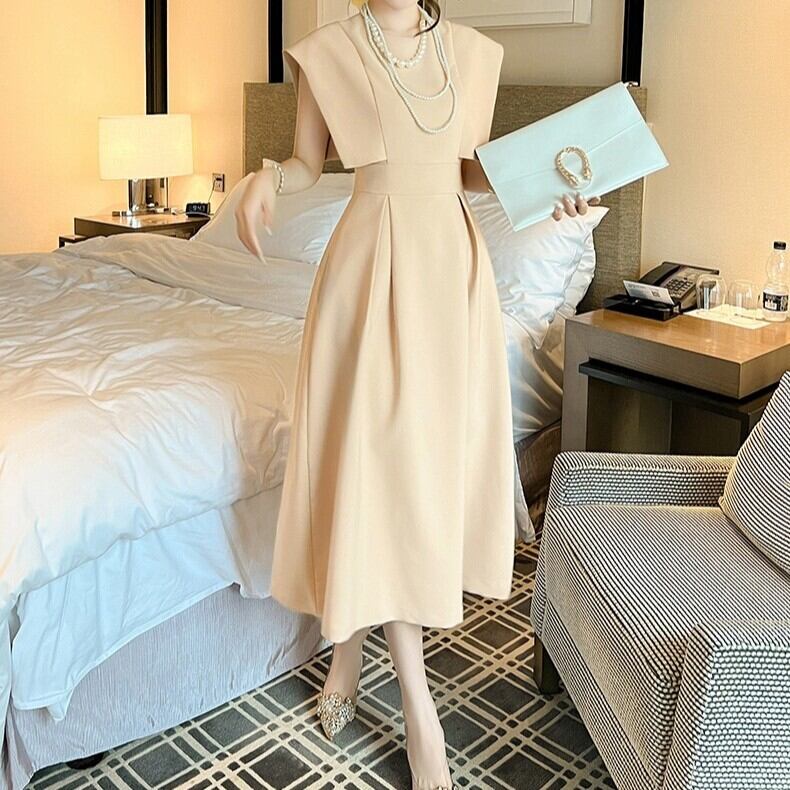 ドレス ワンピース ウェディング パーティー 結婚式 二次会 披露宴 演奏会 発表会 ステージ 舞台 フォーマル 謝恩会 ミディアム丈 ノースリーブ ラウンドネック ファスナー ハイウエスト きれいめ 大人可愛い 上品 おしゃれ かっこいい ガーリー クール エレガント 主役級 存在感 ゴージャス 華やか 無地 イベント 旅行 レストラン 韓国 脚長 高見え 格上げ 女子会 春 夏 秋 冬 シーズンレス 大きい S M L XL シャンパン