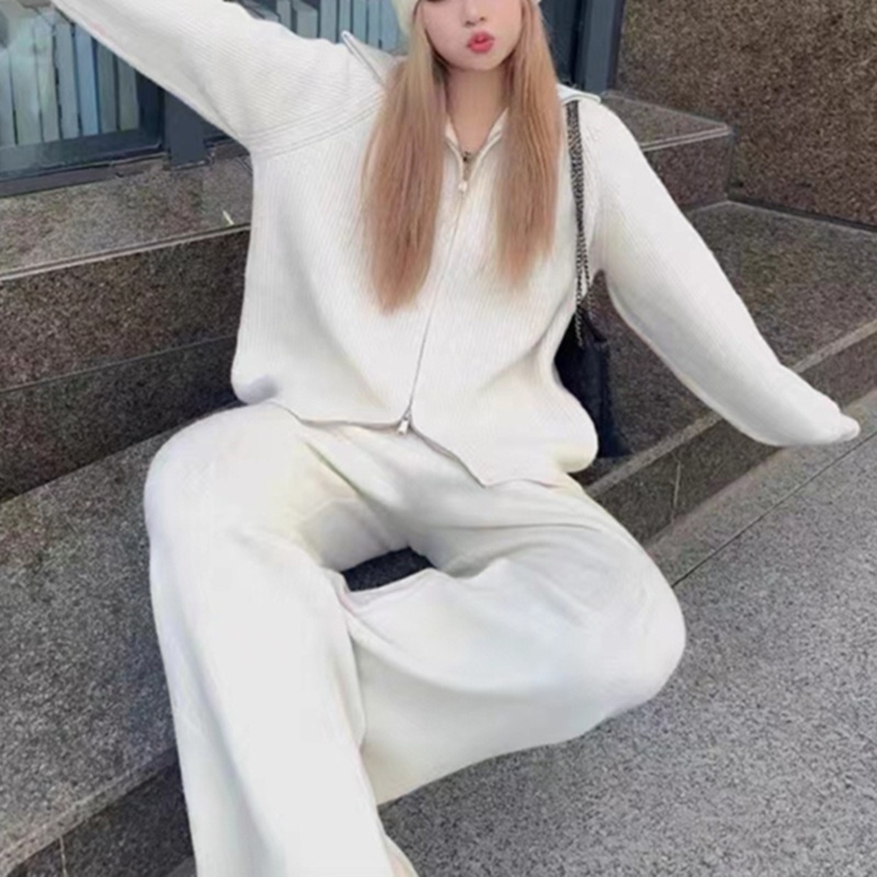 魅力的な2点セットが登場!おしゃれなタートルネックのセーターと、これからの季節にぴったりなワイドパンツがセットになっています。長袖のデザインは、秋冬のコーディネートに大活躍。ハイウエストのパンツが脚長効果を引き出し、立体感のある美しいシルエットを演出します。都会的でガーリー、おしゃれさとクールさが融合したこのセットは、通勤、デート、お出かけなど、さまざまなシーンで活躍します!
