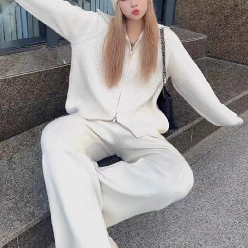 2点セット レディース トップス パンツ セーター セットアップ ワイドパンツ 長袖 タートルネック ファスナー ハイウエスト 大人可愛い きれいめ おしゃれ かっこいい ガーリー クール 都会的 ナチュラル 無地 秋 冬 通勤 デート お出かけ お泊まり イベント 旅行 公園 女子会 休日 ショッピング コンサート ライブ カフェ 韓国 コーデ 楽ちん プレゼント 脚長 普段使い 着回し モテ インスタ映え フリーサイズ ワンサイズ ブラック ブラウン グレー オフホワイト カーキ