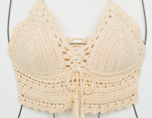 水着 ビキニ セパレート パッド付き レース 編み込み 上下セット シンプル カジュアル ナチュラル 存在感 個性的 セクシー ニット 無地 リゾート 旅行 温泉 プール 夏 海 ビーチ スタイルアップ インスタ映え S M ベージュ