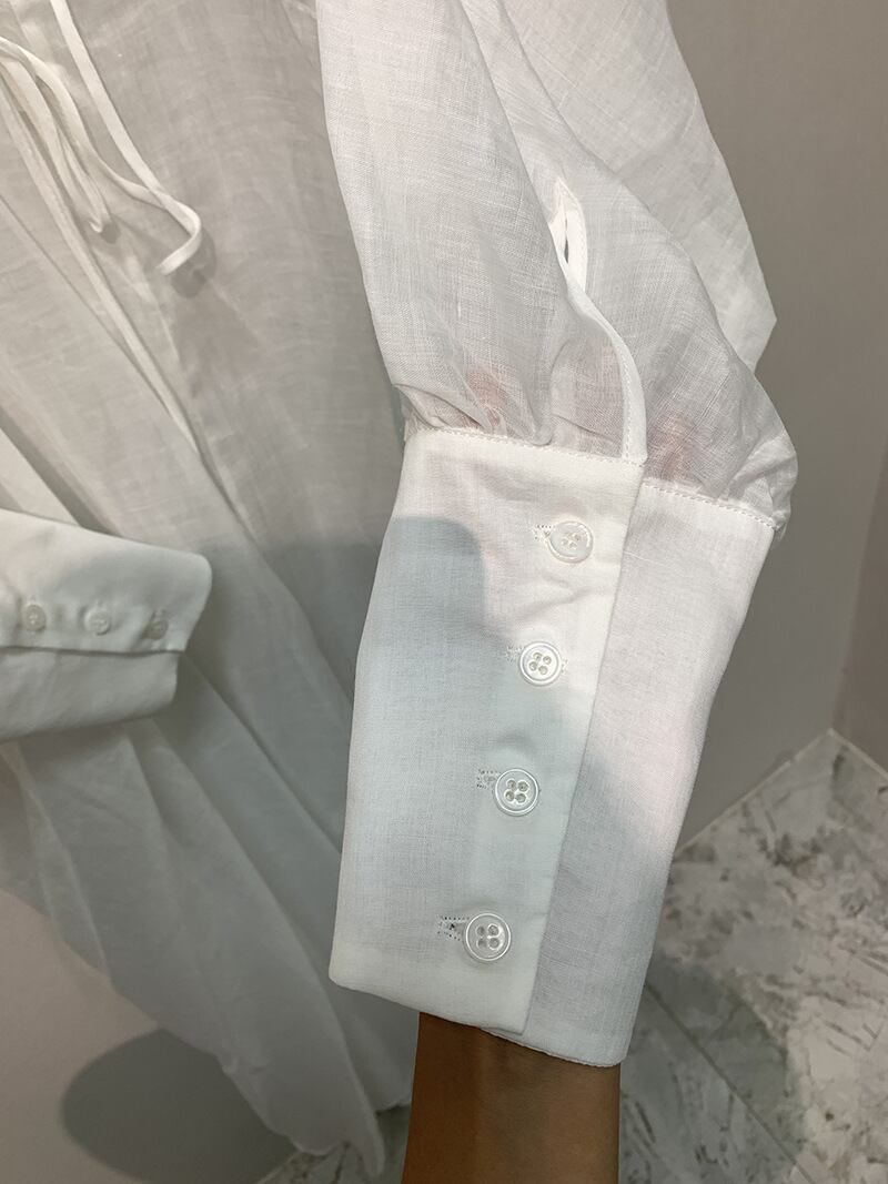 軽やかなシアー素材が魅力の、ロングカフスデザインのシャツワンピースです。