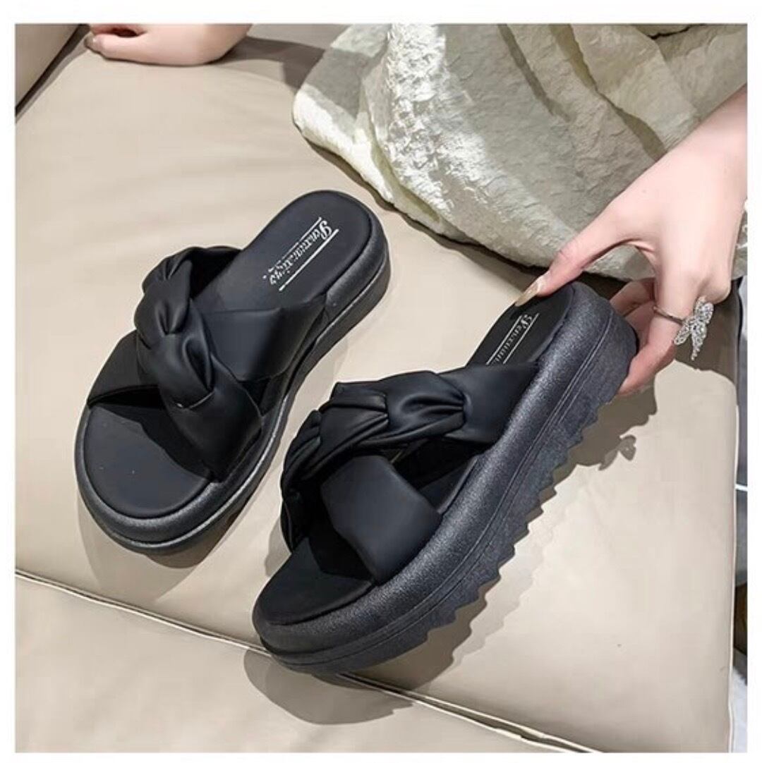 エレガントでありながらカジュアルに楽しめる、レディース厚底サンダルのご紹介です。どんなシーンにも合わせやすいシンプルで美脚効果抜群のデザインは、普段使いから特別な日まで幅広く活躍します。太ヒールと厚底仕様で、安定感がありながらも、歩きやすさを追求した一足。かかと無しデザインは、履きやすく、疲れにくくなっています。