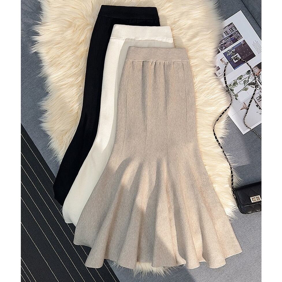 スカート ロングスカート マーメイドスカート ニットスカート マーメイドロングニットスカート ウエストゴム ロング丈 ミモレ丈 裾フレア ニット タイト スマート 無地 レディース かわいい 大人可愛い おしゃれ ガーリー エレガント キュート きれいめ 上品 お出かけ ショッピング 休日 通勤 通学 デート 女子会 イベント 旅行 体型カバー ゆったり スタイルUP デイリー 普段使い フェミニン シンプル クラシカル カジュアル レトロ スタイリッシュ 高見え 鮮度アップ