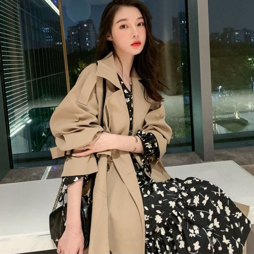 スタイリッシュなトレンチコート。優美でありながらも堂々とやさしい風合いで洗練さを両立。リラックスしたまま女性らしさを残せるのでドレッシーにもカジュアルにも合わせられる。使い道が多い以上にプラスの効果があるふり幅の大きい1着。