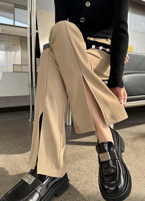 スリット入りデザインが抜け感をプラスし、都会的でモダンな印象に仕上げます。