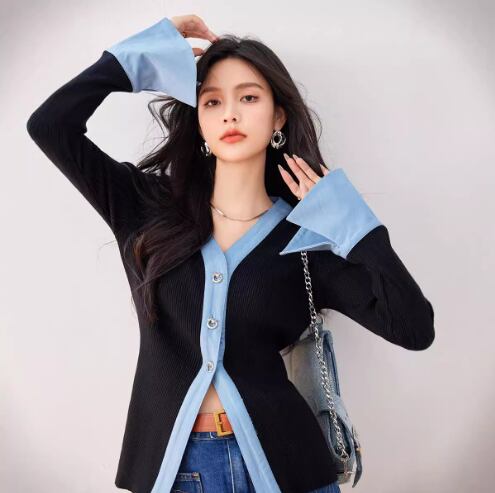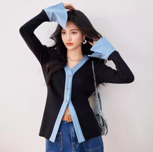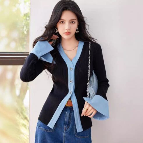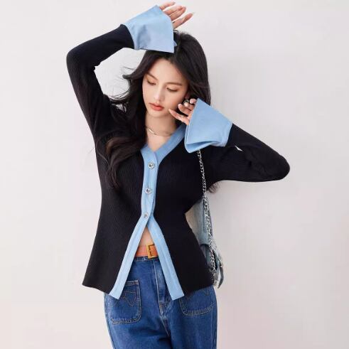 レディース トップス ニット セーター 前開き コルネットスリーブ Vネック スリム 前開き ボタン 厚手 コットン ポリエステル かわいい 大人可愛い おしゃれ かっこいい こなれ感 都会的 無地 秋 冬 ハロウィン クリスマス バレンタイン 授業参観 10代 20代 30代 40代 通勤 通学 デート お出かけ 公園 女子会 ショッピング コンサート ライブ 合コン コンパ カフェ 婚活 重ね着 暖かい 普段使い インスタ映え S M L XL 黒×青