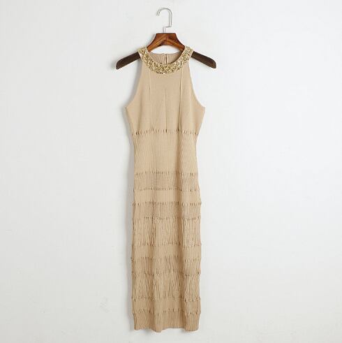 ドレス ワンピース パーティー 結婚式 二次会 披露宴 演奏会 発表会 ステージ 舞台 キャバ ダンス 衣装 謝恩会 演劇 クラブ ロング ノースリーブ ホルターネック Aライン ハイウエスト ビーズ バックジッパー ニット 薄手 ビスコース繊維 可愛い 大人可愛い 上品 おしゃれ アジアン エレガント エレガント 無地 パーティー イベント ホテル レストラン 夏 秋 結婚式 二次会 披露宴 パーティー 謝恩会 演奏会 発表会 舞台 演劇 キャバ クラブ フリーサイズ 黒 茶色