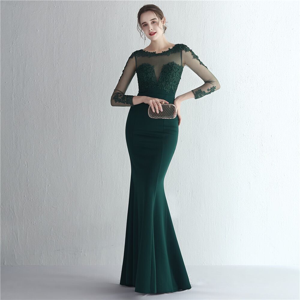 このドレスは、パーティー、二次会、発表会、ステージなどの特別なシーンにぴったりな一着です!エレガントなクルーネックデザインとレギュラースリーブが特徴で、上品な印象を与えます。タイトなマーメイドシルエットが美しいラインを強調し、薄手のサテン素材と透け感のあるチュール切り替えが、シーズンを問わず華やかなスタイルを実現します。さらに華やかな刺繍とラインストーンが、ドレス全体に存在感をプラスし、セクシーでおしゃれな雰囲気を演出します