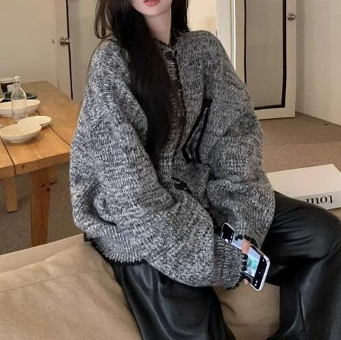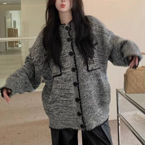レディース トップス ニット カーディガン 上着 羽織 前開き ミドル丈 長袖 レギュラースリーブ Vネック ボタンダウン ふわふわ ポケット 前開き 編み上げ ボタン 中厚手 スパンデックス かわいい シンプル レトロ ラフ ガーリー リラックス ハンドメイド 無地 秋 ハロウィン ママ マタニティ 10代 20代 30代 40代 オフィス 通勤 学生 学校 通学 お泊まり 女子会 楽ちん 暖かい 普段使い 着回し 定番 フリーサイズ グレー