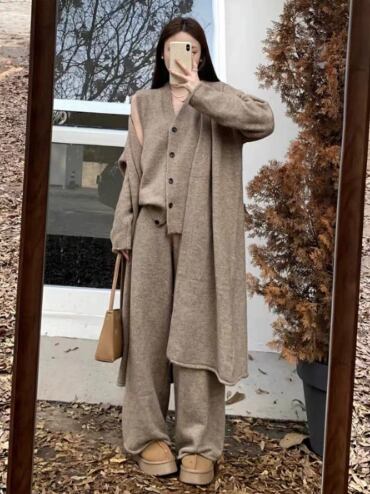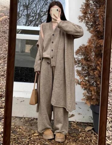 レディース トップス パンツ ニット カーディガン ベスト セットアップ 上着 パンツセット 膝下 ロング ハーフ ノースリーブ 長袖 Vネック ワイド ストレート Aライン 前開き 編み上げ ボタン ニット ポリエステル ビスコース繊维 大人可愛い きれいめ シンプル 上品 ラフ リラックス 無地 秋 20代 30代 40代 デート お出かけ イベント ショッピング 発表会 合コン コンパ カフェ 婚活 楽ちん 着回し フリーサイズ 黒 グレー ダークグレー オフホワイト カーキ