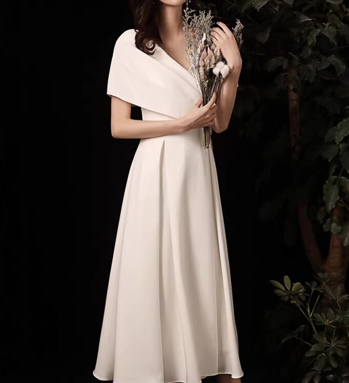 エレガントな魅力を持つドレスが登場!このミディアム丈のウェディングドレスは、パーティーや二次会、演奏会、発表会、さらには舞台での特別な瞬間をより一層引き立てます。シンプルでありながら存在感のあるデザインは、いつでも華やかさを演出し、あなたを引き立てること間違いなしです!