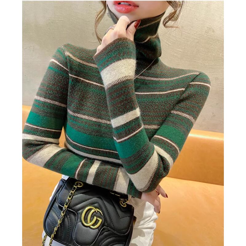 シンプルでありながら存在感のあるデザインが、秋冬のさまざまなお出かけシーンにぴったりです。タートルネックとスリムなシルエットが、スタイリッシュさを引き立て、カジュアルな装いにもエレガントな雰囲気をプラスします。ストライプデザインが特徴で、普段使いから通勤、イベントまで多彩なシーンで活躍します。