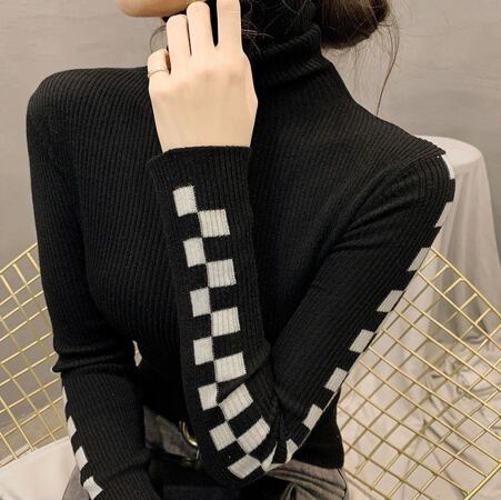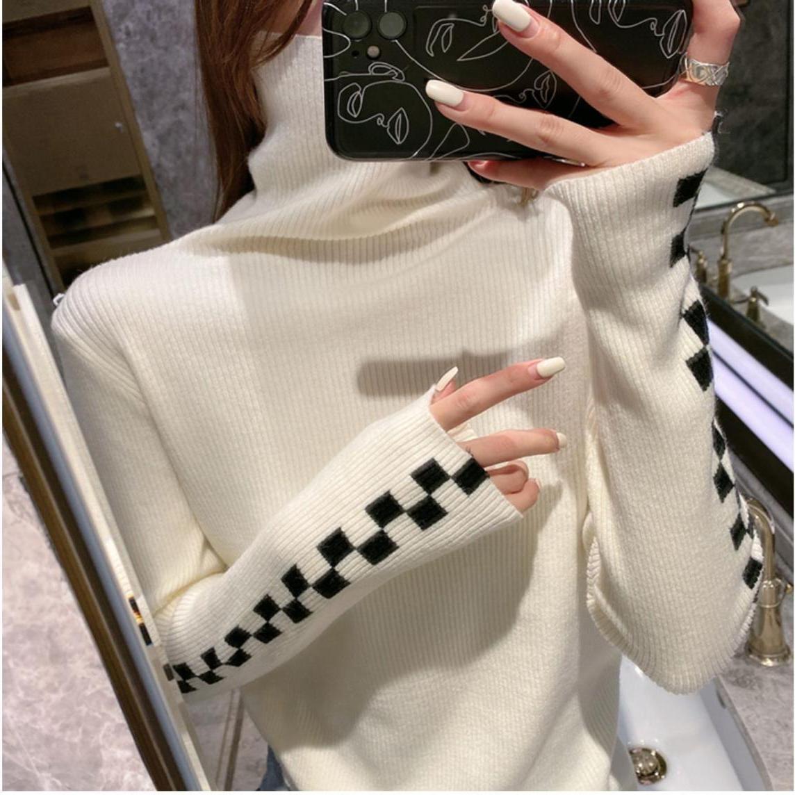 レディース ニット セーター レギュラー丈 長袖 タートルネック タイト スリム プルオーバー リブ 中厚手 ニット ポリエステル スパンデックス シンプル おしゃれ 個性的 存在感 チェック 秋 冬 通勤 デート お出かけ アウトドア キャンプ イベント リゾート 旅行 レストラン ビーチ 公園 女子会 休日 バカンス ショッピング 発表会 コンサート ライブ カフェ 暖かい 普段使い 定番 S M L XL 2XL 3XL 4XL ホワイト ブラック