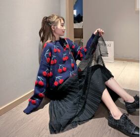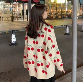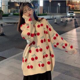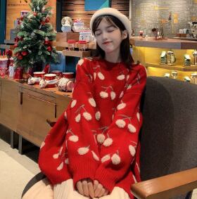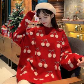 このセーターは、さくらんぼ柄のキュートな雰囲気を纏い、10代から40代まで幅広い年齢層にマッチします。マタニティの方にも対応したフリーサイズで、安心してご着用いただけます。韓国風のおしゃれを楽しみながら、インスタ映えも狙える一枚です。