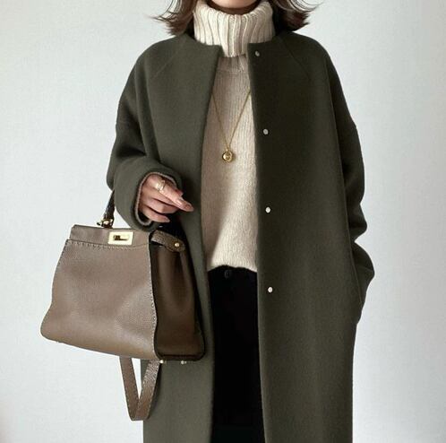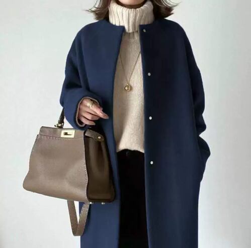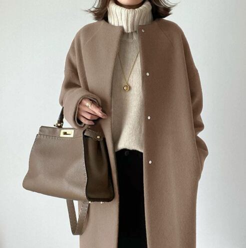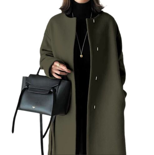 レディース コート ロングコート ロング 長袖 ラウンドネック 襟なし ストレート ポケット 前開き ボタン バックル 中厚手 ウール アクリル繊維 かわいい きれいめ シンプル カジュアル おしゃれ ラフ 日系 無地 秋 冬 ハロウィン クリスマス バレンタイン 授業参観 ママ マタニティ 10代 20代 30代 40代 通勤 通学 デート お出かけ アウトドア 公園 ショッピング 楽ちん 暖かい 防寒 体型カバー フリーサイズ 白 黒 ベージュ カーキ ネイビー