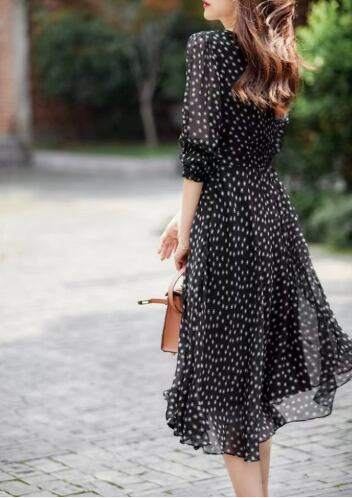 色味はおしゃれな黒×白水玉模様で、どんなアイテムとも組み合わせが簡単です!流行に左右されず、長く愛用できる定番アイテムです。