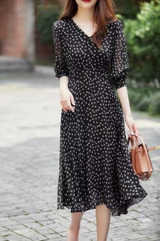 レディース ワンピース 膝下 長袖 Vネック フレア Aライン ウエストマーク ポリエステル かわいい 大人可愛い シンプル 上品 おしゃれ アジアン 水玉 ステッチ 秋 二次会 ハロウィン 授業参観 ママ 10代 20代 30代 40代 デート お出かけ イベント リゾート レストラン バカンス ショッピング コンサート お花見 合コン コンパ カフェ 婚活 楽ちん 脚長 着回し 清楚 定番 S M L XL 2XL 黒
