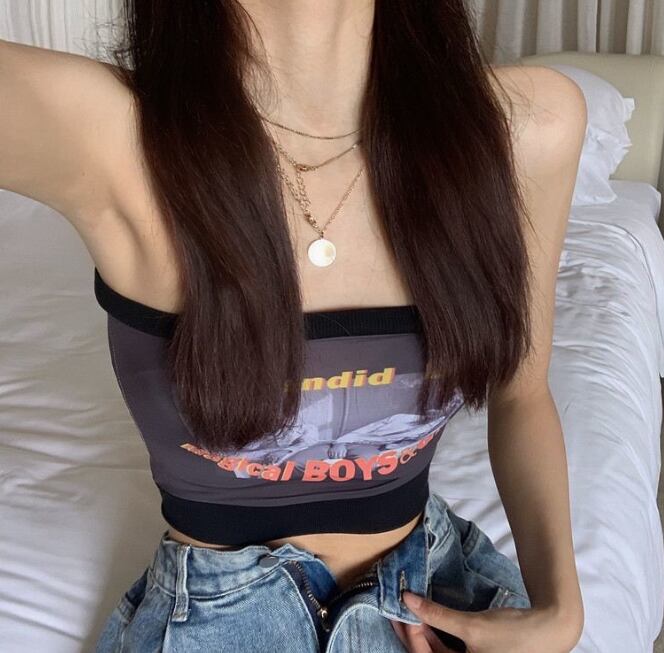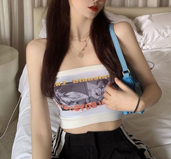 レディース トップス チューブトップ レギュラー丈 袖なし 襟なし タイト リブ ストラップレス 薄手 ナイロン カジュアル かっこいい ボーイッシュ プリント 夏 OL 通勤 学生 お出かけ アウトドア キャンプ イベント リゾート 旅行 海 プール 女子会 休日 普段使い トレンド セクシー フリーサイズ 白 黒