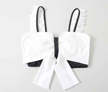 水着 タンキニ 体型カバー セパレート パッド付き ノースリーブ リボン フリル 伸縮性 安定感 ツーピース かわいい カジュアル おしゃれ 存在感 キュート 個性的 フェミニン 無地 リゾート 旅行 温泉 プール 夏 海 ビーチ 美脚 背中見せ M L XL ブラック&ホワイト