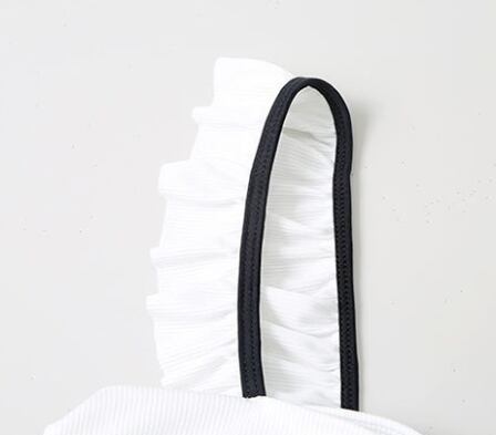 色展開は、シンプルで合わせやすい無地のブラック&ホワイト。夏のリゾートや旅行、温泉での着用にも最適です。また、伸縮性のある素材を使用しているため、安定感があり動きやすく、快適な着心地を提供します。