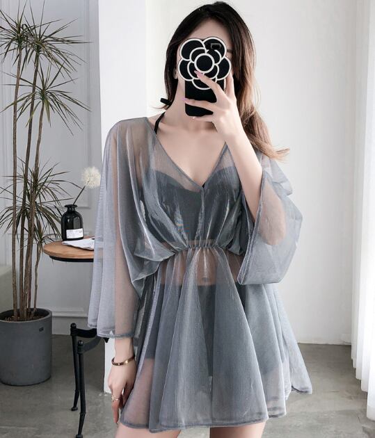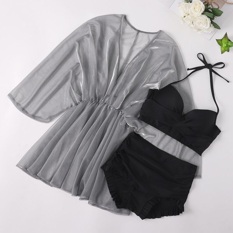 水着 ビキニ レディース 羽織り セパレート ホルターネック フリル スリーピース 大人可愛い カジュアル おしゃれ 存在感 無地 リゾート 旅行 温泉 プール 夏 海 ビーチ 美脚 体型カバー 日除け M L XL 黒 茶色