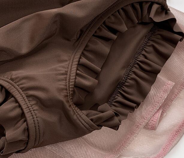 大人可愛いデザインの水着ビキニが登場!ホルターネックスタイルとフリルが施されたエレガントなスリーピースは、リゾートや旅行にぴったり。カジュアルでありながら存在感があり、ビーチやプールサイドで注目を浴びること間違いなしです。さらに、体型カバー効果もあるので、気になる部分をしっかりと隠しつつ、美脚を演出します。シンプルな無地カラーの黒と茶色は、どんなデザインにも合わせやすく、使い勝手が良いアイテムです。
