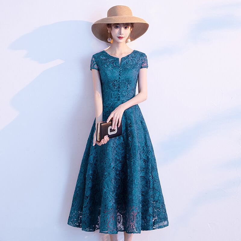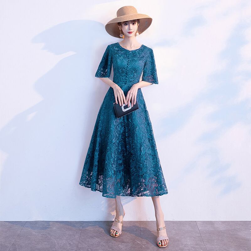 ドレス パーティー 結婚式 二次会 披露宴 演奏会 発表会 ステージ ミディアム丈 半袖 7分袖 フラッタースリーブ クルーネック Aライン イブニング レース 刺繍 ファスナー ハイウエスト 透け感 ポリエステル繊維 上品 おしゃれ エレガント 存在感 フォーマル 清楚 花柄 パーティー イベント リゾート ホテル ガーデン 春 XS S M L XL 2XL 3XL 黒 ピーコックブルー ネイビーブルー バーガンディ