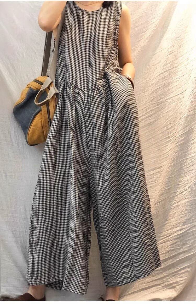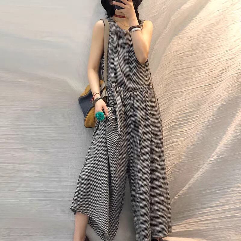 レディース プルオーバー ワイドパンツ ロング ノースリーブ クルーネック ワイド Aライン 裾ワイド ストリート プルオーバー プリーツ タック ハイウエスト 薄手 ポリエステル カジュアル 個性的 存在感 チェック 夏 OL 通勤 デート お出かけ アウトドア キャンプ イベント リゾート 旅行 海 プール ビーチ 公園 女子会 休日 バカンス ガーデン ショッピング カフェ 体型カバー 普段使い 着回し 定番 L XL ゆったり 黒