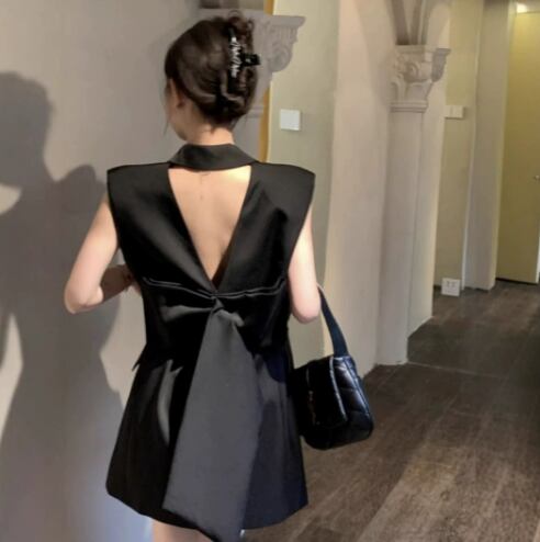ワンピース パーティー 発表会 ステージ キャバ 衣装 コスチューム クラブ ミニ 袖なし Vネック 襟付き ベルト ウエストマーク バックリボン ハイウエスト 薄手 ポリエステル繊維 可愛い シンプル 大人可愛い おしゃれ アジアン セクシー 無地 パーティー イベント ホテル レストラン 韓国 脚長 高見え 格上げ 光沢感 春 秋 パーティー 演奏会 発表会 舞台 キャバ クラブ S M L XL 黒