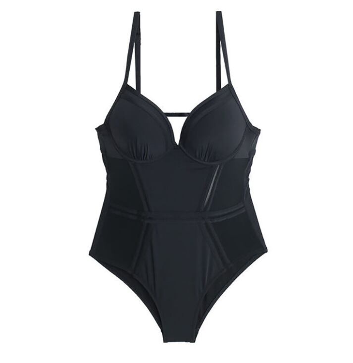 水着 ビキニ レディース ワンピース 体型カバー パッド付き 伸縮性 メッシュ 安定感 スパンデックス シンプル カジュアル 存在感 クール セクシー 無地 リゾート 旅行 温泉 プール 夏 海 ビーチ スタイルアップ インスタ映え M L XL ブラック