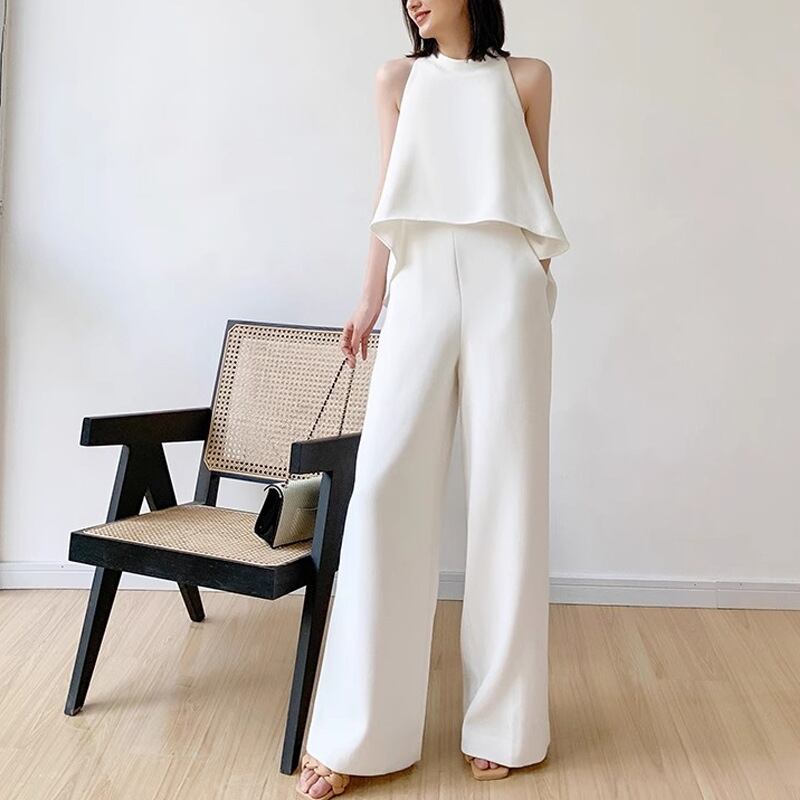 レディース オールインワン ジャンプスーツ ストレートレッグパンツ ロング ノースリーブ レギュラースリーブ ハーフハイネック ワイド アシンメトリー ミニマリストスタイル シフォン ハイウエスト ポリエステル シンプル 上品 おしゃれ 個性的 存在感 フォーマル スタイリッシュ 無地 夏 オフィス ビジネス OL 通勤 デート お出かけ パーティー イベント リゾート 旅行 レストラン ホテル ガーデン 脚長 インスタ映え スタイルアップ S M L XL ホワイト