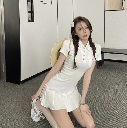 こちらの「レディース ワンピース プリーツスカート」は、シンプルでありながらおしゃれ感満載の一着です!ポロカラーとハイウエストデザインが特徴的で、ウエストマークがスタイルアップを実現します。カジュアルな印象ながら、デートやお出かけ、お揃いコーデにも最適なアイテムで