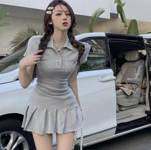レディース ワンピース プリーツスカート ショート レギュラースリーブ ポロカラー スリム ウエストマーク ハイウエスト ボタン 切り替えデザイン ポリエステル かわいい シンプル カジュアル おしゃれ 学生風 無地 夏 ママ 10代 20代 デート お出かけ イベント リゾート 旅行 レストラン 公園 女子会 休日 コンサート ライブ 合コン コンパ カフェ お揃い プレゼント 着回し インスタ映え スタイルアップ セクシー S M L XL 2XL 白 グレー