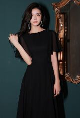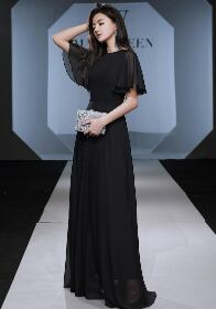 ドレス パーティー 結婚式 二次会 発表会 ステージ ラウンジ クラブ ロング 半袖 プリンセススリーブ クルーネック Aライン イブニング ハイウエスト 透け感 シースルー ポリエステル繊維 シンプル 大人可愛い 上品 おしゃれ かっこいい アジアン エレガント エレガント シック 無地 パーティー イベント ホテル レストラン 脚長 高見え 秋 二次会 披露宴 パーティー 発表会 舞台 キャバ クラブ S M L XL 2XL 黒