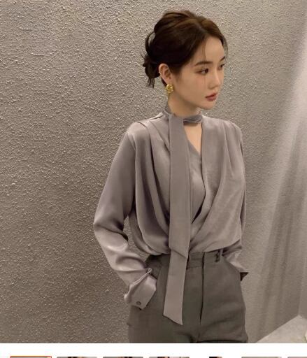 レディース シャツ レギュラー丈 レギュラースリーブ Vネック 襟なし りぼんタイ レース 中厚手 ポリエステル 大人可愛い きれいめ シンプル 上品 おしゃれ かっこいい アジアン こなれ感 エレガント 無地 春 MTG ミーティング プレゼン 20代 30代 40代 オフィス ビジネス OL 通勤 デート お出かけ パーティー イベント バカンス ホテル ショッピング 発表会 コンサート 合コン コンパ カフェ お揃い 韓国 プレゼント インスタ映え セクシー S M L 黒 グレー ピンク