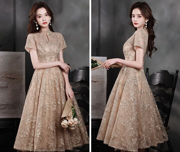 こちらの「ドレス パーティー 二次会 演奏会 発表会 ステージ 謝恩会 ロング ミディアム丈 半袖 レギュラースリーブ ハーフネック プリンセスライン Aライン イブニング プリーツ レース 刺繍 ファスナー ハイウエスト 厚手 ポリエステル繊維 きれいめ 上品 おしゃれ エレガント 存在感 清楚 花柄 パーティー イベント リゾート ホテル レストラン 冬 XS S M L XL 2XL 3XL シャンパン」は、特別な瞬間を華やかに演出するためにデザインされたアイテムです!ロングミディアム丈とAラインのシルエットが美しく身体のラインを引き立て、エレガントな雰囲気を醸し出します。レースや刺繍のディテールが施されており、さらに特別感あふれるスタイルに仕上げています。