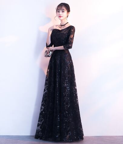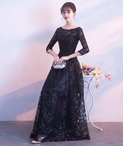 こちらの「イブニングドレス 」は、特別なシーンにぴったりな、魅力あふれるアイテムです!7分袖とラウンドネックのデザインが、エレガントな印象を与えつつ、スリムなAラインシルエットが身体のラインを美しく引き立てます。ウエストマークとウエストリボンが程よいアクセントとなり、よりスタイルアップを実現します。
