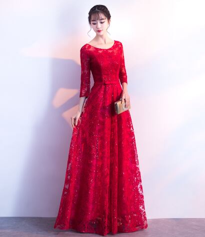 ドレス パーティー 結婚式 二次会 演奏会 発表会 ステージ キャバ ダンス クラブ ロング 7分袖 ラウンドネック スリム Aライン イブニング レース ウエストマーク ウエストリボン ハイウエスト ジッパー 薄手 ポリエステル繊維 可愛い 大人可愛い 上品 おしゃれ アジアン エレガント 華やか パーティー イベント ホテル レストラン 脚長 春 結婚式 二次会 披露宴 パーティー 演奏会 発表会 舞台 キャバ クラブ 2XL S M L XL 黒 ピンク ネイビー レッド